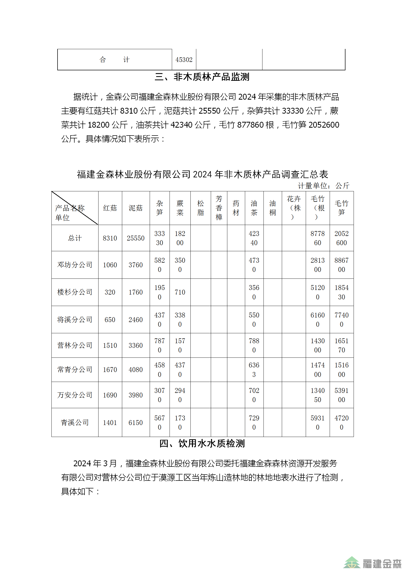 金森公司2024年监测结果