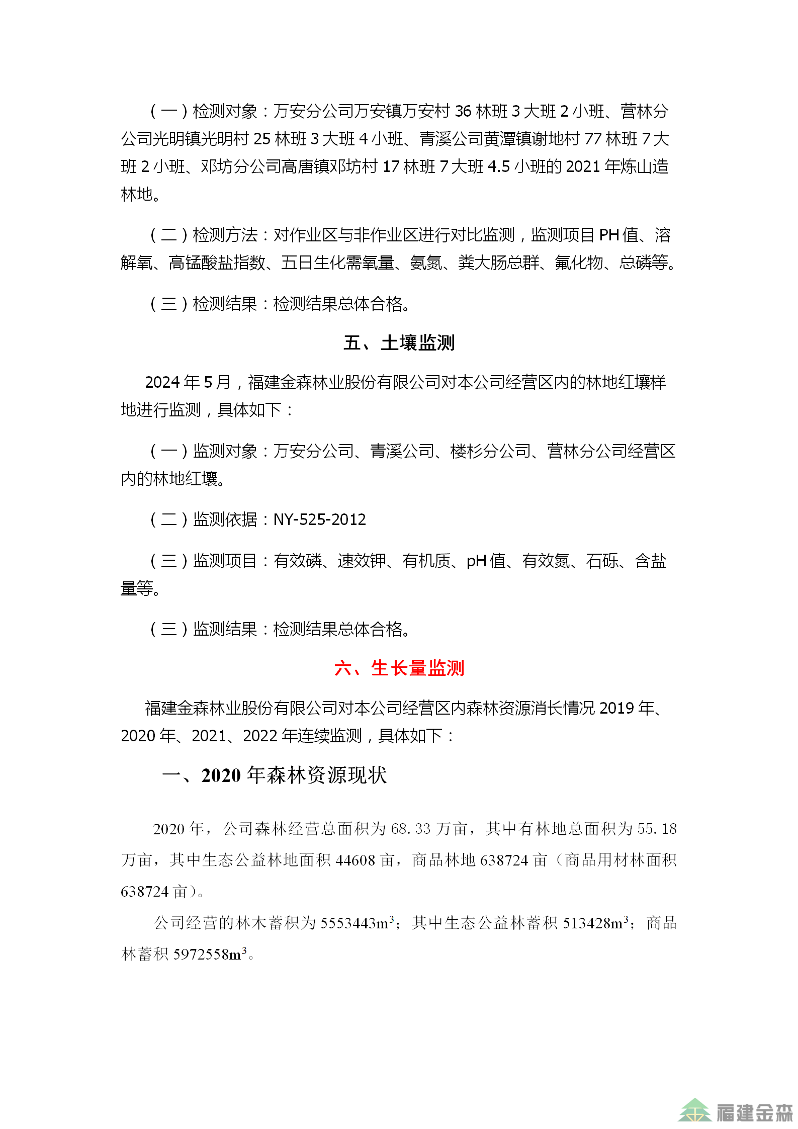 金森公司2024年监测结果